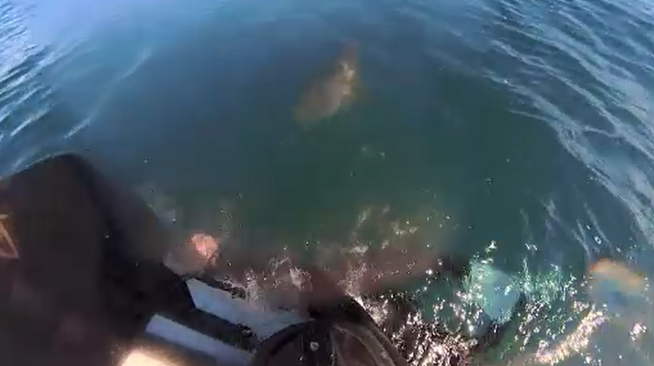 "I literally just pressed record and put it on top, put my helmet on and looked to my right and saw a shark heading straight towards my side," he said.