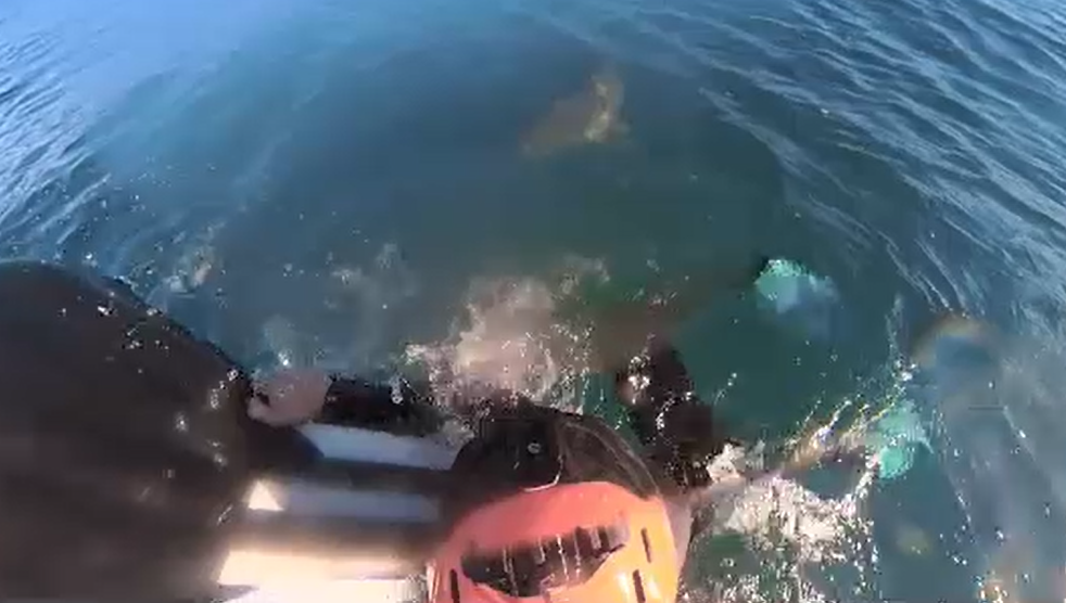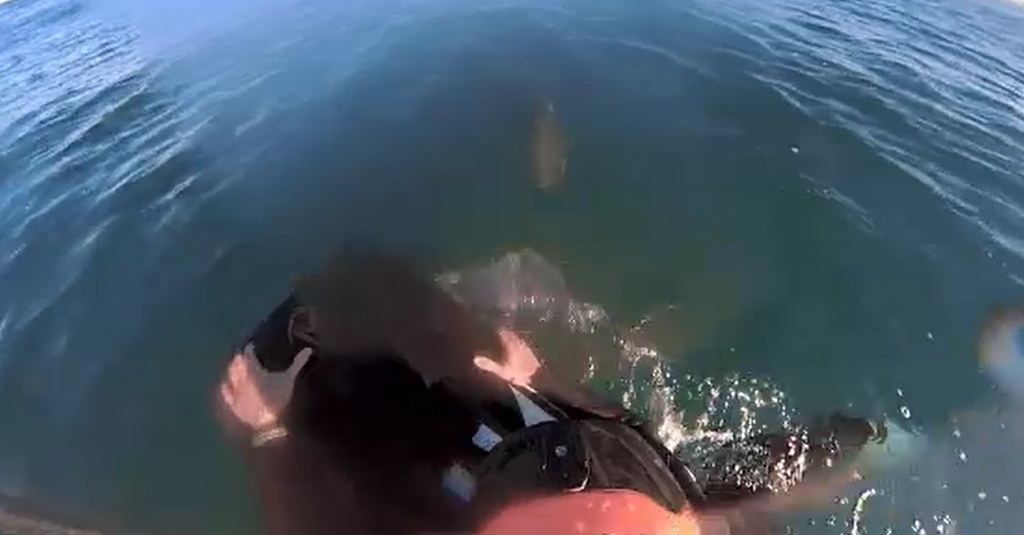 The encounter happened about 200 metres from the shore, with the entire incident captured on a helmet camera worn by Mr Essig.