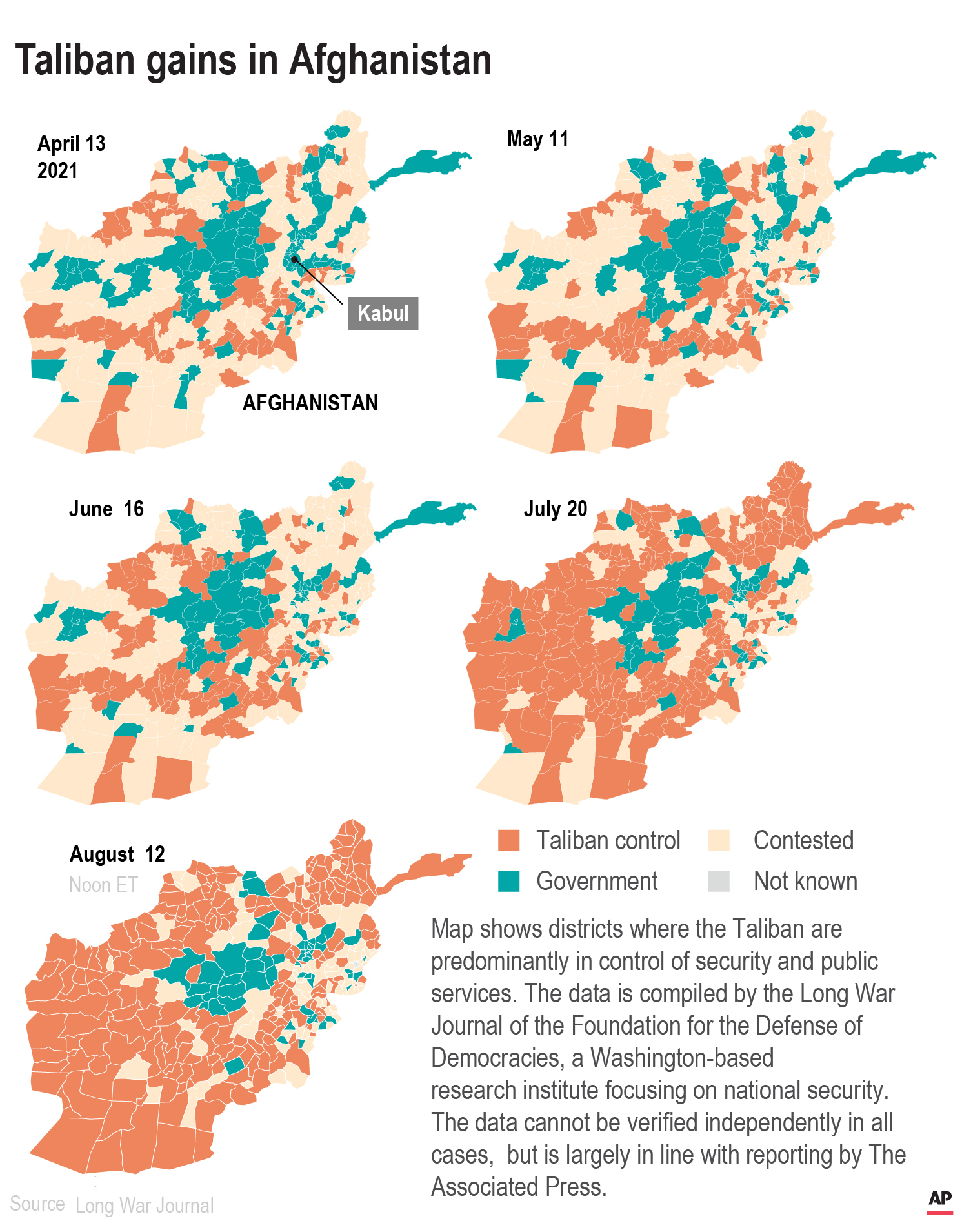 "Whatever forces are left or remaining that are in the Kabul area and the provinces around them, they're going to be used for the defence of Kabul," Roggio said. "Unless something dramatically changes, and I don't see how that's possible, these provinces (that have fallen) will remain under Taliban control."
