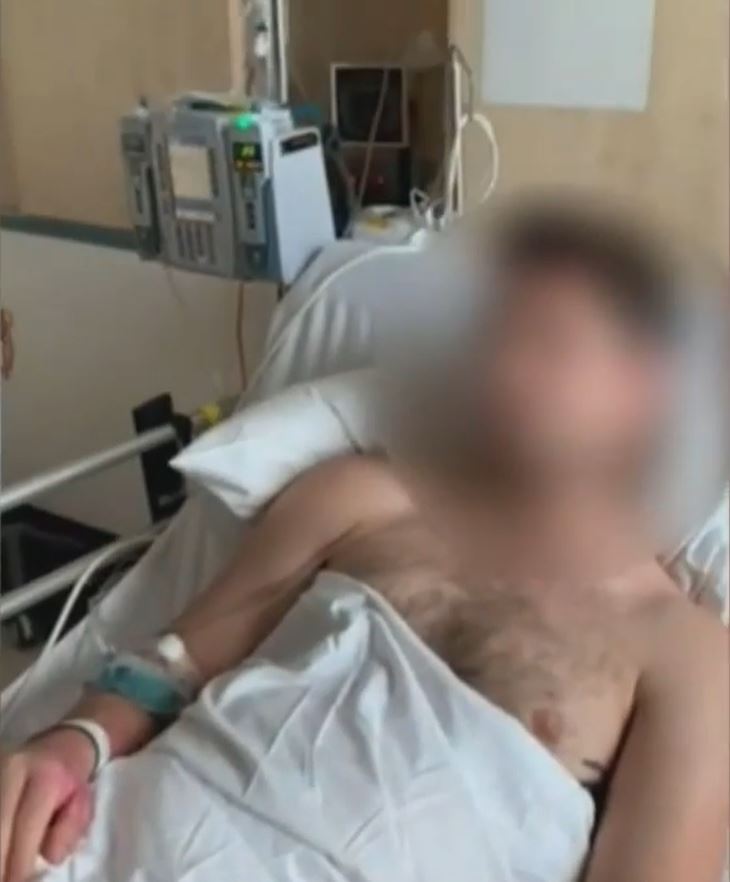 He then stumbled into the arms of a nurse and was treated.